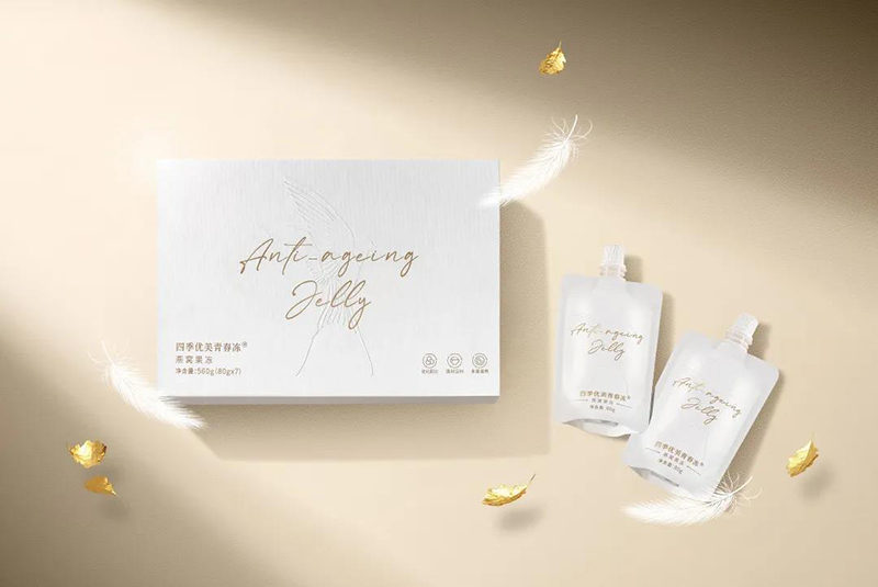 上市即熱銷的四季優美青春凍®燕窩果凍,就是這樣一款人氣年禮。一份沉甸甸的高檔禮盒,內含7袋高顏值獨立裝,平均每袋含有1.2g+優選燕窩,同時添加可直接被人體吸收的魚膠原蛋白肽,以及多種膳食纖維,0脂輕卡,開袋即食,從包裝、到用料、到價格,都做到了誠意十足的滿分。